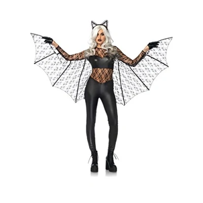 Set includes a wetlook and lace zipper back catsuit with fingerlooped extendable wings sleeves and matching lace ear headband. Size: L (UK 14-16) You will receive; 1 x Catsuit, 1 x Headband Please hand wash or cold machine wash your costume. Do not iron or bleach., Manufacturer: Leg Avenue