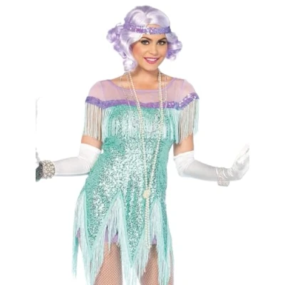 Includes fringe trimmed sequin zipper back dress With zig zag hem and matching sequin headband Mulicolouired set of 2 Material: 100% polyester Brand: Leg Avenue, Manufacturer: Leg Avenue