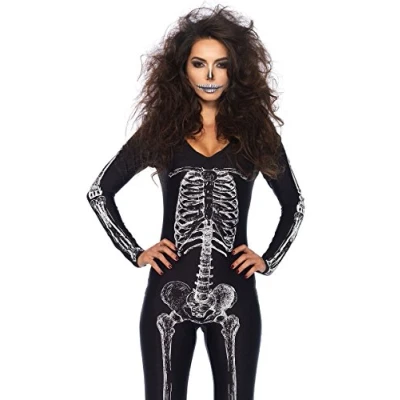 X-ray skeleton catsuit costume With zipper back Colour: black / white Brand: Leg Avenue Material: 87% polyester, 13% elastase, Manufacturer: Leg Avenue