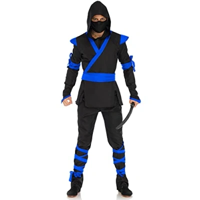 Leg Avenue 85653 05705 5 Pc Ninja Costume With Shirt, Pants, Belt, Face Mask, Hood Carnival/Halloween, Black Blue, S M