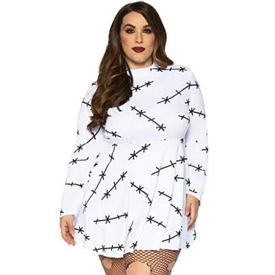 Leg Avenue 86882 00806 Jersey Stitch Dress Women's Costumes, White/Black, M L