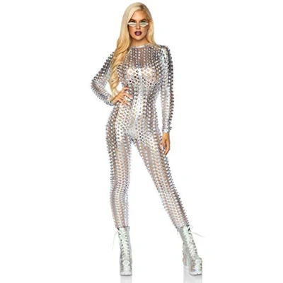 Laser cut metallic catsuit with zipper closure. Size XL/ UK 16-18 MATERIALS/ CARE: Hand wash cold, Do not bleach, Drip dry, Do not iron Perfect for theme parties, cosplay, Halloween, or just creating some naughty fun! MATERIALS/ CARE: Hand wash cold, Do not bleach, Drip dry, Do not iron, Manufacturer: Leg Avenue