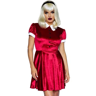 2 pieces. Witch set: velour dress with decorative buttons and headband. Size: M (UK 10-12) Fantastic fit, high wearing comfort. Hand wash only and hang to dry. Do not bleach. 100% polyester., Manufacturer: Leg Avenue Inc.