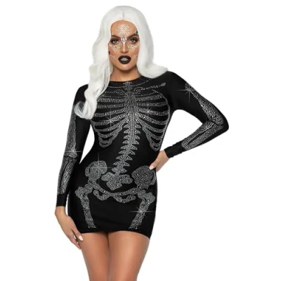 Leg Avenue 86928 00101 Rhinestone Skeleton Dress Women's Costumes, Black, S