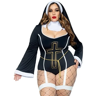 Leg Avenue 86978X-00708 4 Pc Sister Sin, Includes Garter Bodysuit With Flared Sleeves And Cross Detail, Lurex Belt, Collar, And Nun Habit, 1X-2X, Blk/White Bodysuit: 93% Polyester 7% Spandex .Front: 100% Polyester . 1X-2X Blk/White, Manufacturer: Leg Avenue Inc.