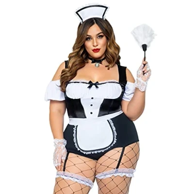 Leg Avenue 87085X-00709 3 Pc Foxy Frenchie, Includes Garter Bodysuit With Attached Apron, Choker, And Hat Headband, 3X-4X, Blk/White Bottom: 93% Polyester .Top: 100% Polyester . 3X-4X Blk/White, Manufacturer: Leg Avenue