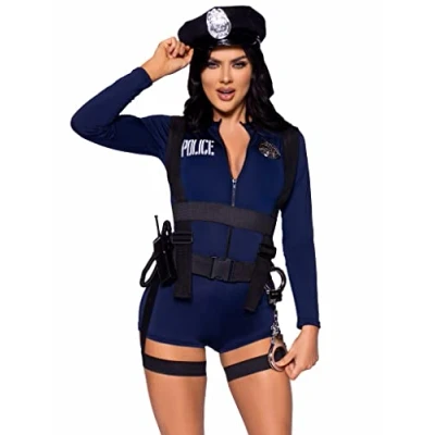 6 PC Cop, includes zip up romper, pin-on badge, garter body harness, toy walkie talkie and handcuffs, and police hat., Manufacturer: Leg Avenue Inc.