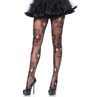 Daring Sugar Skull net pantyhose Great for Halloween Polyamide / Spandex Hand wash only Imported