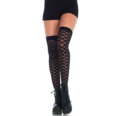 Sheer and opaque checkerboard thigh highs Sexy and feminine Colour: black Brand: Leg Avenue Material: 100% polyamide/nylon