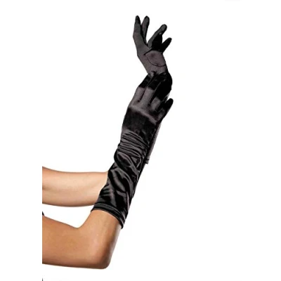 Leg Avenue Elbow Length Satin Glove, Black