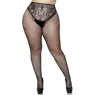 Leg Avenue Fishnet Tights with Backseam, 1X 2X (Black)