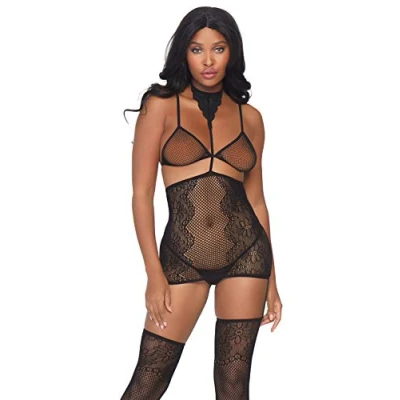 Leg Avenue 89088-00122 3 Pc Lace Halter Garter Skirt, Net Bikini Top, And Matching Thigh Highs, O/S, Black Bodystocking: 94 Percent Nylon 6 Percent Spandex Comfortable product