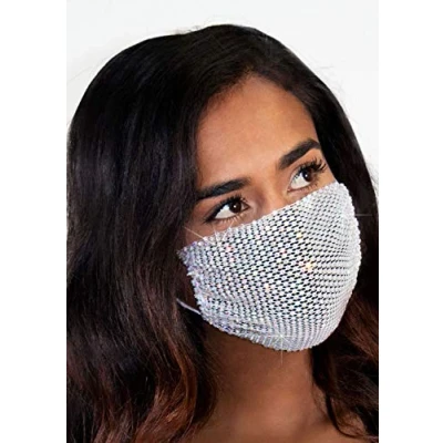 OS Fits most teens and adults. The Harlow rhinestone reusable face mask cover features adjustable ear covers. Can be worn over your surgical mask or as a fun fashion accessory on its own. The Harlow face mask cover is made from breathable stretch poly and is reusable and hand washable. This wasable cloth face mask is perfect for home, office or for outside protection., Manufacturer: Leg Avenue Inc.