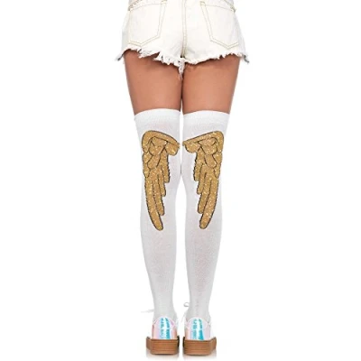 Over the knee socks With woven in lurex angel wings Colour: white / gold Brand: Leg Avenue Material: 100% polyester