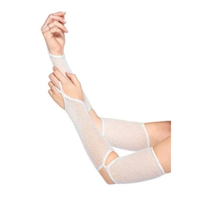 Leg Avenue Women's Opaque Net Cut Out Butterfly Applique Arm Warmers, White, One Size