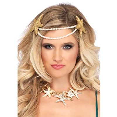 Mermaid pearl starfish headband Color: golden / silver Brand: Leg Avenue Material: knitted fabric: 100% polyester, lace: 100% nylon Halloween and carnival