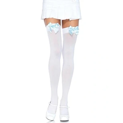 Leg Avenue Nylon Thigh Highs with Bow (White/Light Blue)