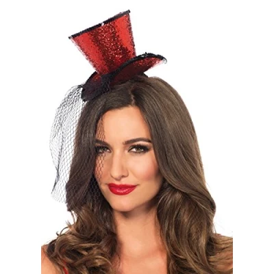 Leg Avenue One Size Red Mini Top Hat with Veil