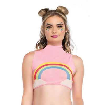 Leg Avenue Rainbow mesh Crop top, Pink, L (UK 14 16)