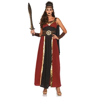 POLYESTER / COTTON Handwash Beautiful long dress with faux leather accents included Create the perfect warrior look Imported, Manufacturer: Leg Avenue