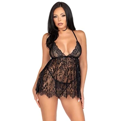 Leg Avenue Sheer Lace Babydoll and String, S/M (UK 8 10), Black, 130 g