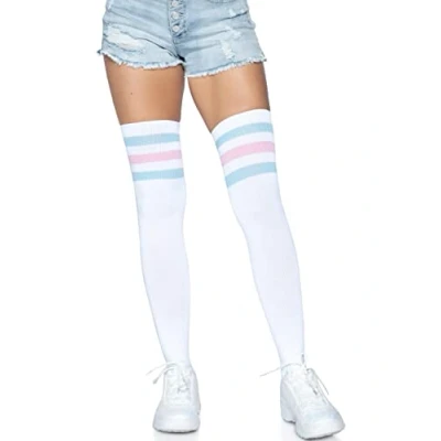 Leg Avenue Women's Athlete Thigh Hi W/ 3 Stripe Top Tights, Pink/Blue, One Size