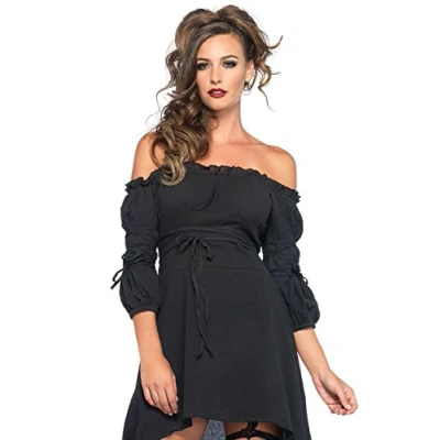 Gauze High Low Peasant Dress With Tie Up Waist And Sleeves Color: black Material: 100% cotton Brand: Leg Avenue
