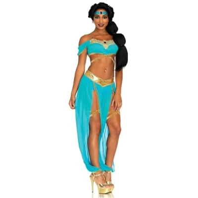 Embody your favorite Arabian tales in the sexy Leg Avenue Oasis Princess Costume Set with sexy off the shoulder wrap crop top, split leg harem pants booty shorts and accessories To keep you covered on your magic carpet adventures, the split leg harem pants have built in booty shorts and the sexy crop top features adjustable clear straps Glittering elastic leg garters and a matching jewel headpiece add a magical finishing touch to this sexy princess Halloween costume X-Small fits 0-2, Small fits size 4-6, Medium fits size 8-10, Large fits size 12-14 and X-Large fits 16-18. To care, hand wash in cold water and drip dry, do not bleach or heat dry For a fairy tale ending, check out the Leg Avenue collection of sexy and cute princess costumes for adults. Great for couples costumes, group costumes or cute solo looks, Manufacturer: Leg Avenue