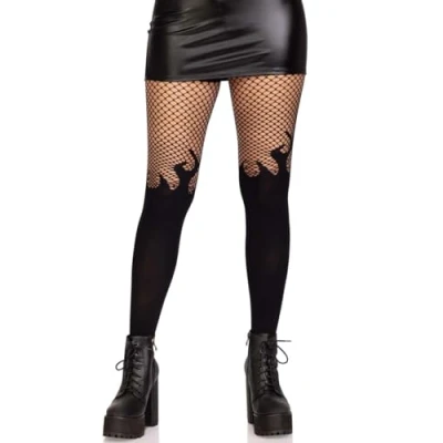 Leg Avenue Women's Opaque Flame Tights with Fishnet Top Costume Hosiery, 40 den, Black, One Size