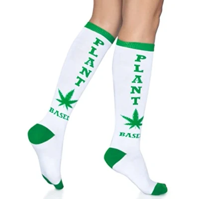 Leg Avenue Women's Plant Based Knee Highs. Tights, White/Green, One Size