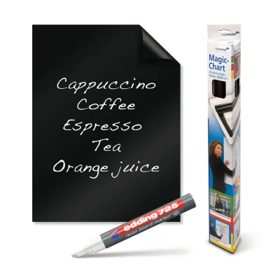 Legamaster Magic-Chart Static Flipchart Foil – 25 Reusable Sheets. Enhance your meetings, workshops, and brainstorming sessions with the Legamaster Magic-Chart Static Flipchart Foil. These reusable, static-charged sheets cling effortlessly to most flat surfaces—such as glass, wood, concrete, or wallpaper—without needing tape or pins.. Static Adhesion: Sticks securely to surfaces without leaving residue or requiring adhesives. Reusable & Repositionable: Move and reuse sheets with ease for flexible collaboration. Generous Format: 25 sheets per roll, each 60 cm wide and perforated every 80 cm. Writable Surface: Write directly on the sheets using the included edding permanent marker. Interactive Design: Compatible with presentation cards and Magic-Chart Notes. Eco-Friendly: Fully recyclable sheets for sustainable use. Create dynamic visual workflows and engage your team with this practical and portable flipchart solution—ideal for professional and creative environments alike.
