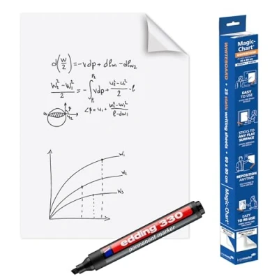 Static Whiteboard-Like Sheets: Easy-to-use writing sheets that stick to any flat surface like wood, concrete, glass, or wallpaper Repositionable & Residue-Free: No adhesive required—leaves no traces and can be easily repositioned or removed after use sustainable & Recyclable: Made from fully recyclable foil, ensuring environmentally friendly use Scope of delivery: 1 x 25 foils, white, 80 cm x 60 cm - incl. 1 Legamaster Marker - Presentation cards and Magic-Chart Notes stick easily to the surface Legamaster offers a wide range of accessories: the diverse contents included in the presentation case can also be reordered separately for refilling