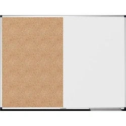 This is a functional whiteboard and pinboard designed for occasional use in either an office or home office. It has two halves - one with a magnetic lacquered steel board surface that can be written on with dry erase whiteboard markers, and the other half has a pinboard with a natural cork board surface. The frame is made of aluminum and comes with grey plastic corner caps (Pantone 433C). It can be mounted either horizontally or vertically to suit your preference.The carrier material is made of material from well-managed, FSC® -certified forests and other controlled sources (FSC C158462)Included in the box:Marker tray (30 cm) with end caps, mounting set and mounting instructions