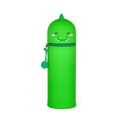 LEGAMI 2 in 1 Soft Silicone School Pencil Case Kawaii, Dinosaur Shaped Pouch, Pen Holder, Zipper, Pencils, Markers, H 18.5 cm, Green,
