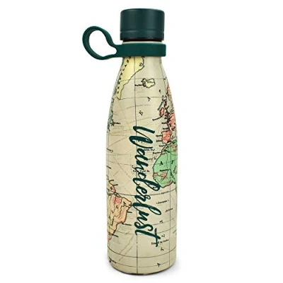 Legami Hot&Cold Thermal Bottle 500 ml, Diameter 7 cm, Lightweight and Durable, Airtight Closure, Removable Silicone Handle, Travel Theme, Wanderlust, BPA Phthalate Free