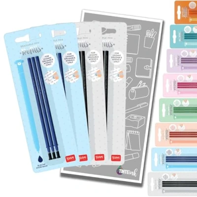 Two Blue Refill Packs and Two Black Refill Packs Heat Sensitive Ink (erasable with the pens eraser tip) Height: 13 cm, Width: 0.4 cm, Diameter: 0.4 cm 0.7mm Tip