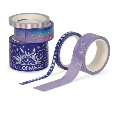 LEGAMI Set of 5 Paper Tapes, Tape by Tape, Magic Theme, Colourful, for Gluing, Decorating and Personalising, 3 Different Sizes, Length Metres Each