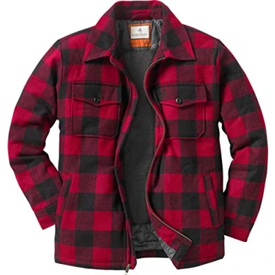 EXTENDED SIZES: Select colors are available in Big & Tall up to 5XL CASUAL FIT: Our Outdoorsman wool jacket typically fits true to size, though some find the need to size down. View our Size Chart for the best fit BUILT TO LAST: Made from a durable wool blend, this jacket delivers lasting performance and reliable warmth in tough conditions DESIGN: Sherpa-lined wool coat with quilted insulated taffeta sleeves for cold-weather comfort, easy layering, and rugged, lasting style FEATURES: Fully lined with soft sherpa, insulated quilted taffeta sleeves, metal zipper, chest and hand-warmer pockets, and Signature Buck logo embroidery
