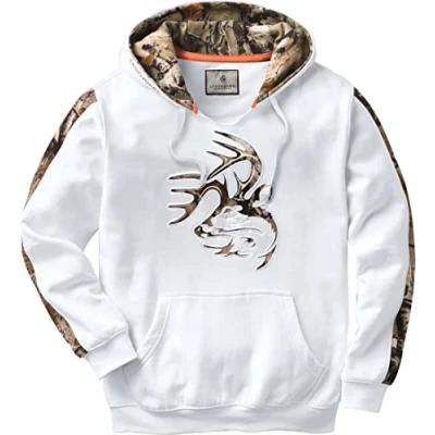 CAMO DETAILS: Select from our exclusive Big Game Camo, Mossy Oak Break-Up Country, Mossy Oak Bottomland or Mossy Oak Elements Terra Coyote EASY ON/OFF: Pre-ripped V-neck for extra comfort in a pullover BRANDING: Legendary Signature Buck cut out logo with camo or solid color inset PREVENT CHILL: 3 panel hood with flat drawstring keeps the wind out while the kangaroo pocket provides hand warmth International products have separate terms, are sold from abroad and may differ from local products, including fit, age ratings, and language of product, labeling or instructions.