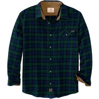 Legendary Whitetails Men's Buck Camp Flannel Button Down Shirt, Tartan Forest Plaid, S