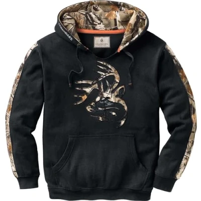 CAMO DETAILS: Select from our exclusive Big Game Camo, Mossy Oak Break-Up Country, Mossy Oak Bottomland or Mossy Oak Elements Terra Coyote EASY ON/OFF: Pre-ripped V-neck for extra comfort in a pullover BRANDING: Legendary Signature Buck cut out logo with camo or solid color inset PREVENT CHILL: 3 panel hood with flat drawstring keeps the wind out while the kangaroo pocket provides hand warmth International products have separate terms, are sold from abroad and may differ from local products, including fit, age ratings, and language of product, labeling or instructions.