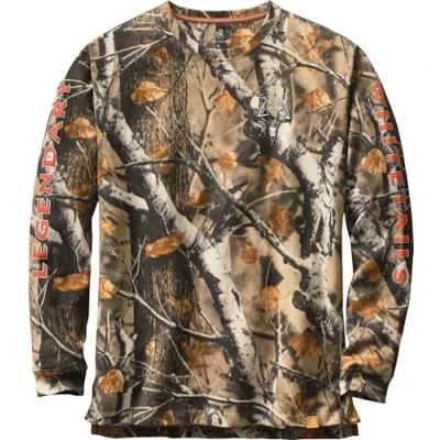 [Fit & Sizing]: Long sleeve tee is crafted from preshrunk heavyweight cotton which fits true to size; available in big and tall sizes [Material & Durability]: 100% cotton material enforced with double needle-stitching and durable neck taping [Quality & Comfort]: T-shirt features tagless label to eliminate scratching, and extended tail and side venting for a tucked or untucked look [Authentic Branding]: This tee stands out with Legendary Whitetails branding on each sleeve and a non-typical buck on left chest [Signature Design]: Seamless ribbed collar, relaxed cuffs, and camo accents