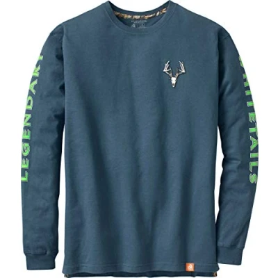 [Fit & Sizing]: Long sleeve tee is crafted from preshrunk heavyweight cotton which fits true to size; available in big and tall sizes [Material & Durability]: 100% cotton material enforced with double needle-stitching and durable neck taping [Quality & Comfort]: T-shirt features tagless label to eliminate scratching, and extended tail and side venting for a tucked or untucked look [Authentic Branding]: This tee stands out with Legendary Whitetails branding on each sleeve and a non-typical buck on left chest [Signature Design]: Seamless ribbed collar, relaxed cuffs, and camo accents