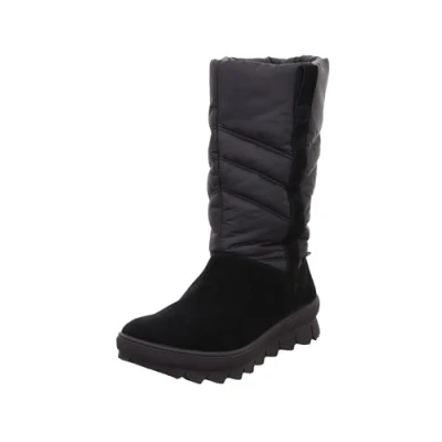 Winter boots with an exciting mix of materials Suede paired with padded textile on the upper Ideal climate for the foot thanks to cosy gore-tex lining Non-slip, extra-light sole with sawtooth profile Available in comfort width G