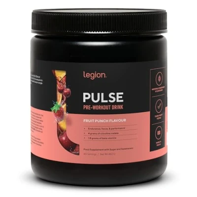 LEGION Pulse Pre Workout Supplement All Natural Nitric Oxide Preworkout Drink to Boost Energy, Creatine Free, Naturally Sweetened, Beta Alanine, Citrulline, Alpha GPC (Fruit Punch)