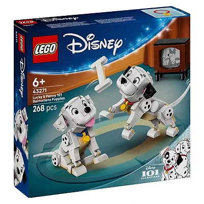 JoybuyLEGO Disney 43271 Lucky&Penny 101 Dalmatians Puppies is a 268-piece buildable toy set featuring poseable Dalmatian puppy characters, Lucky and Penny, along with fun accessories. Ideal for kids aged 6 and up, it encourages imaginative play without requiring batteries.