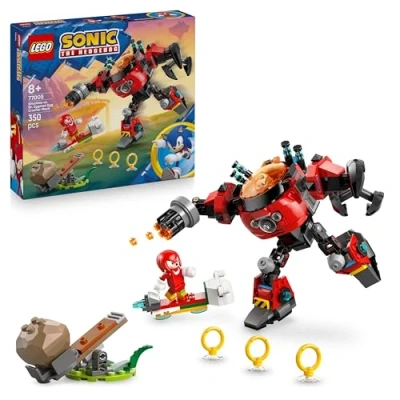 LEGO Sonic the Hedgehog Knuckles vs. Dr. Eggman Egg Crusher Mech Toy Building Set incl. 2 Minifigures, Rings & Chaos Emeralds Video Gaming Gift for 8+ Year Old Boys Girls 77005