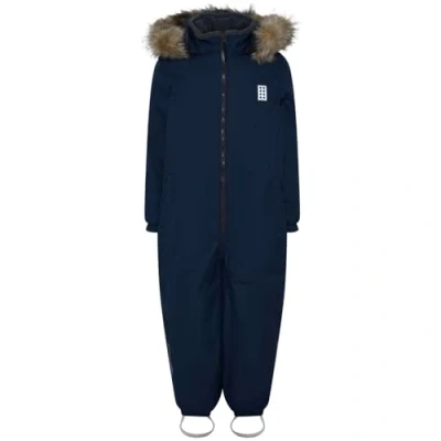 LEGO Wear snowsuit with faux fur trim on the hood. with taped seams and a 15,000 mm hydrostatic head. 100% waterproof, windproof and breathable with Bionic Finish ECO impregnation. with removable hood and quality reflectors. buckles for attaching Lego Wear gloves and the sleeves. silicone foot straps