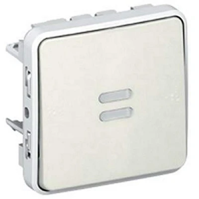 General characteristics: 10 AX switches - 250 V - Mechanisms delivered with bezels Recessed and surface mounting of mechanisms with boxes and supports Light or indicator functions delivered with 230 V lamps Connection to automatic terminals. PRODUCT Characteristics: IP 55 - IK 07 - Illuminated two-way switch - White