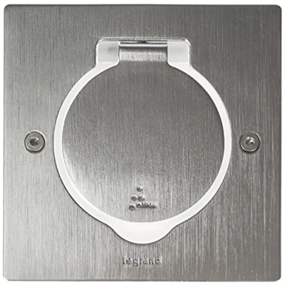 Legrand IP44 Waterproof Round Stainless Steel Floor Socket Kit with Shutter + Recessed Box